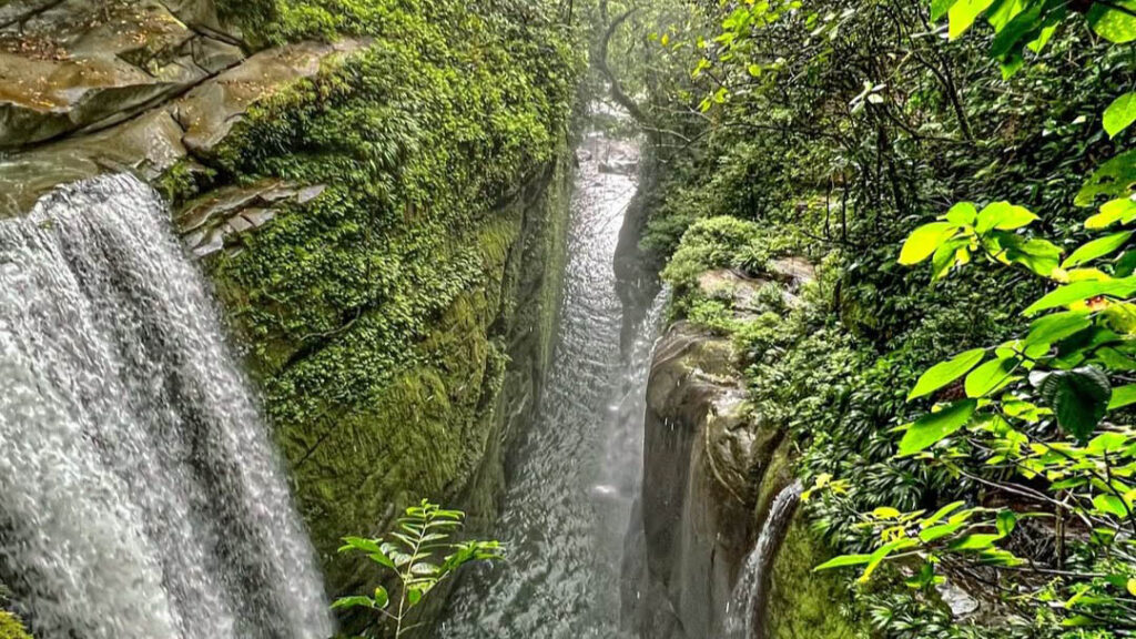 La Cascada Klosay no irrumpe: se revela. El sonido del agua golpeando la roca se mezcla con el canto de los insectos y el eco profundo del bosque. Es un espectáculo que no busca impresionar, sino envolver. El agua cae con fuerza, pero también con una serenidad que parece recordar que todo aquí tiene su ritmo.